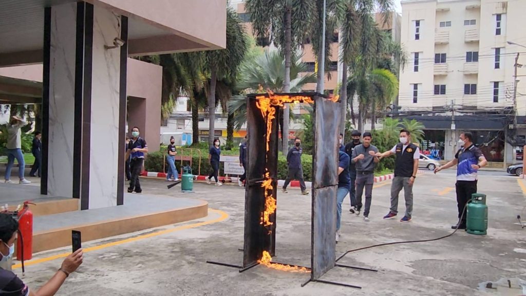 ช่วงเช้า: ภาคทฤษฎี ให้ความรู้เกี่ยวกับทฤษฎีการเกิดเพลิงไหม้, วิธีการดับเพลิง, ถังดับเพลิง, การใช้ถังดับเพลิง, วิธีตรวจเช็คถังดับเพลิง, การทำ CPR, การเคลื่อนย้ายผู้ป่วย