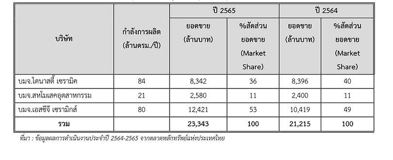 ยอดขายและ%สัดส่วนยอดขายแบ่งตามธุรกิจกระเบื้องปูพื้นและบุผนังในกลุ่มเซรามิค